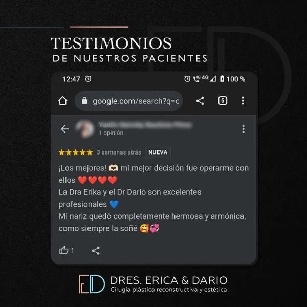 Operamos juntos en cada procedimiento, combinando nuestra visión femenina y masculina para lograr resultados más armónicos, naturales y precisos. Somos una dupla quirúrgica que te acompaña en todo momento con empatía, cuidado y dedicación real